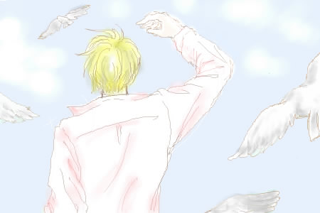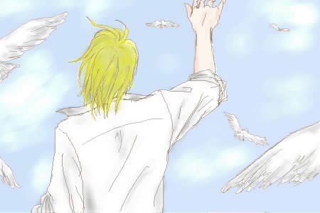 天気のいい日には船尾に立つ。 残り物の出ない船の、それでもおこぼれに預かろうと寄って来る鳥達に 少しだけの分け前を振舞う。 船に余裕のある時に限られるが、サンジは船尾で鳥と戯れる。 付かず離れず併走する鳥達は 時に舞い飛び、時に舞い降り、肩口を掠める様に飛ぶ。 自由に青い空を飛ぶ鳥達は、時折マストで羽を休め 見張り台に立つ者を和ませ、数日を共に併走すると やがて目的の地を目指して飛んで行く。 あの小さな体のどこに そんな力が隠されているのかと思う程 遠い島を目指して飛行を続ける為に。 あの鳥は自分が何処に向かっているのか判っているのだろうか。 判らなくとも遺伝子に組み込まれた記憶を頼りに飛ぶのだろうか? ただ本能のままに飛ぶのだろうか ? 鳥達が別れを告げる頃 船尾で 過ぎた航路が波間に消えるのをタバコを吸いながら見た。 体の中に埋もれた記憶を辿る。 時折、軌跡を描いて水面を滑る あの頃の航海に思いを馳せる。 海に向かって切り立った高台から 青い海を見る時、海の真ん中に居るような錯覚に陥る事がある。 あの愛しい船を降りてから 揺れない大地に根を張るつもりで生きてきた。 なのに 気を緩めると思い出すのは、あの 波に軋み 風に揺れる船の事。 パン屑に飛びつき すぐ側を舞い飛ぶ鳥に ここがあの頃となんら変らないと錯覚させられる。 ここはあの船の上ではないのに。 鳥達が立ち寄るこの島に 立ち止まってしまった俺が居る。 次の島へと飛び去る鳥達を見送って 胸ポケットに手をやる自分に思わず苦笑がもれる。 長年の癖とは いつまで経っても抜けないものだ。 あれからタバコは止めたというのに。 あの愛しい船を 降りてから俺はタバコに手を出していない。 ・・あの船の匂いがする物は 置いてきた。 もって出たのは 料理人の命でもある包丁と最小限の荷物。 それは愛しい船に乗る男の事を思い出すのが怖かったから。 あいつと俺の間には 仲間という以外 何も無かった。 ただ同じ船に乗り合わせた仲間。 それだけだった。 それなのに少し色あせた記憶の中で あいつの顔もおぼろげになりつつあるというのに 俺は未だに忘れられないのだ。 あの頃の感情を。 持て余してしまって どうしようもなくなってしまった感情。 消化してしまわなくてはならない感情。 捨てなくてはならない感情。 時間の経った今でもそこだけは 時が止まったように鮮明なままで。 早く日常に埋もれてしまえばいいと思うのに 感情は色あせる事無く尚色鮮やかで・・。 もう会う事も無いであろうあいつへの感情とも 今ならもう少し上手く付き合っていけそうな気がする。 |